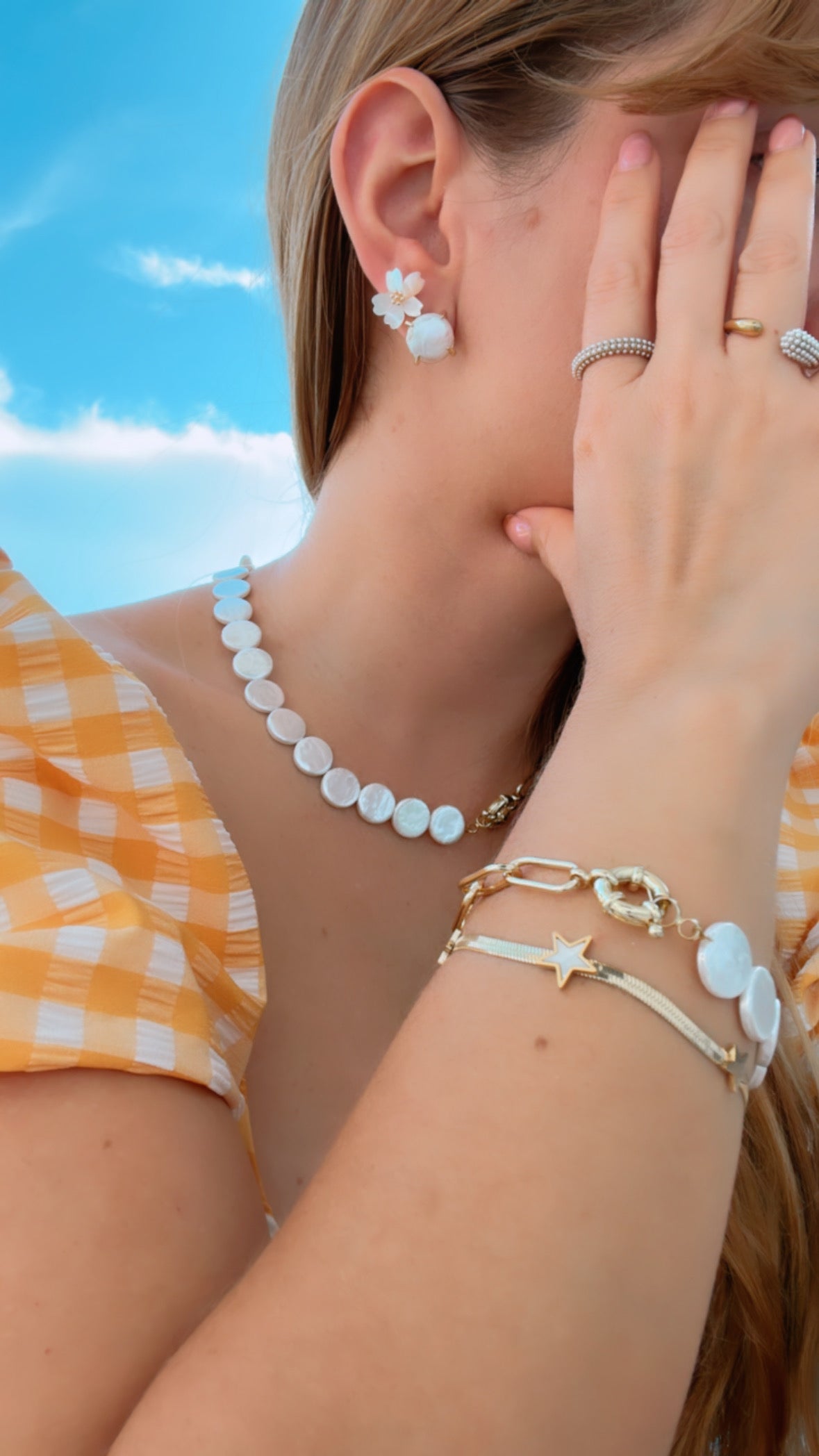 Care: Try to avoid your jewelry coming into contact with perfumes, skin and hair products.